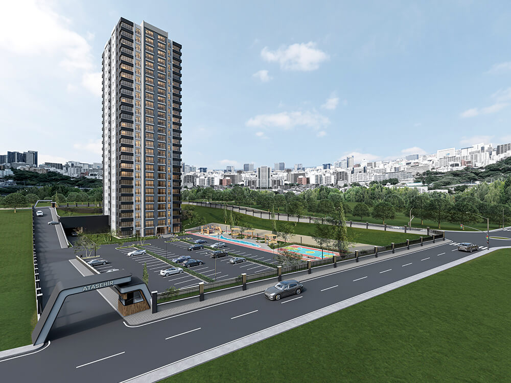 sosyal donatı ve peyzaj alanına sahip 98 daireden